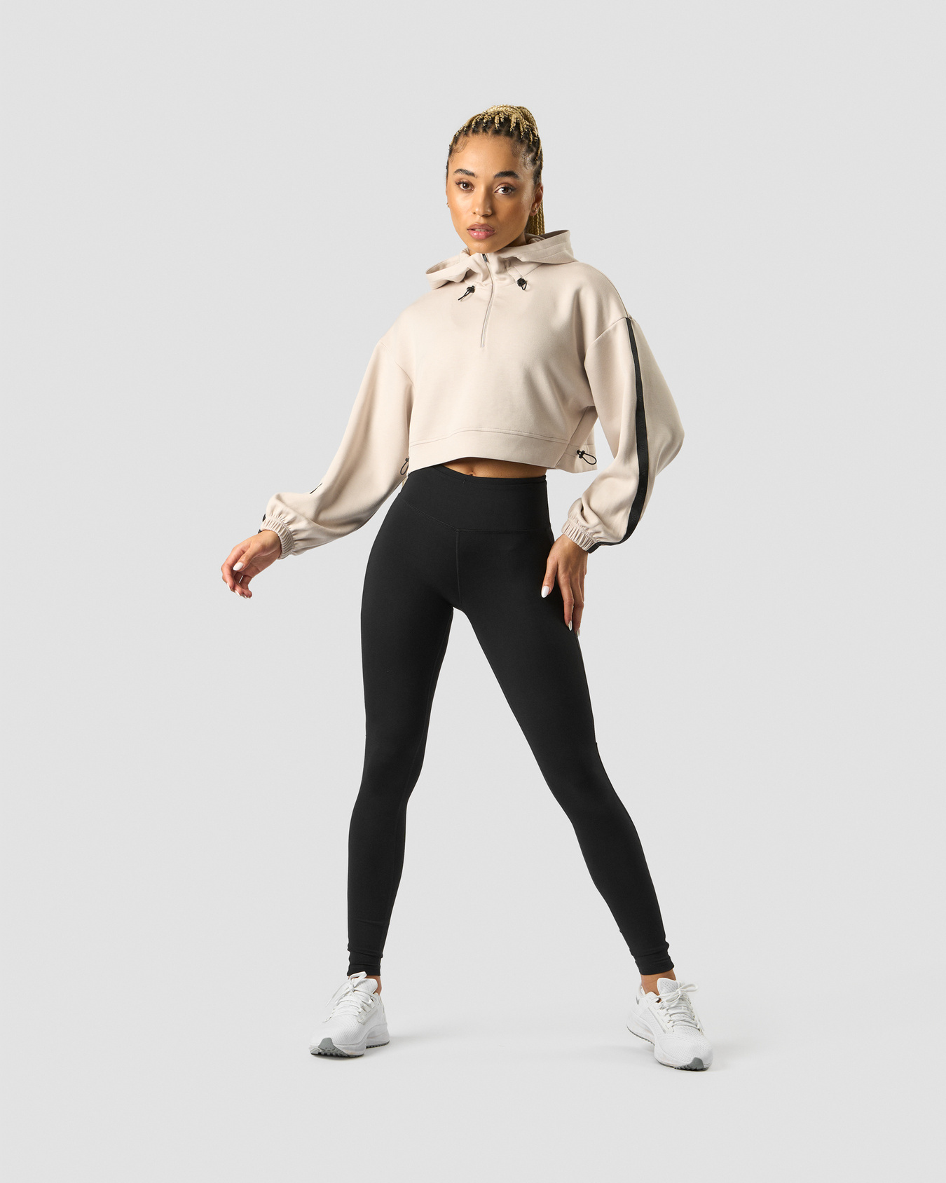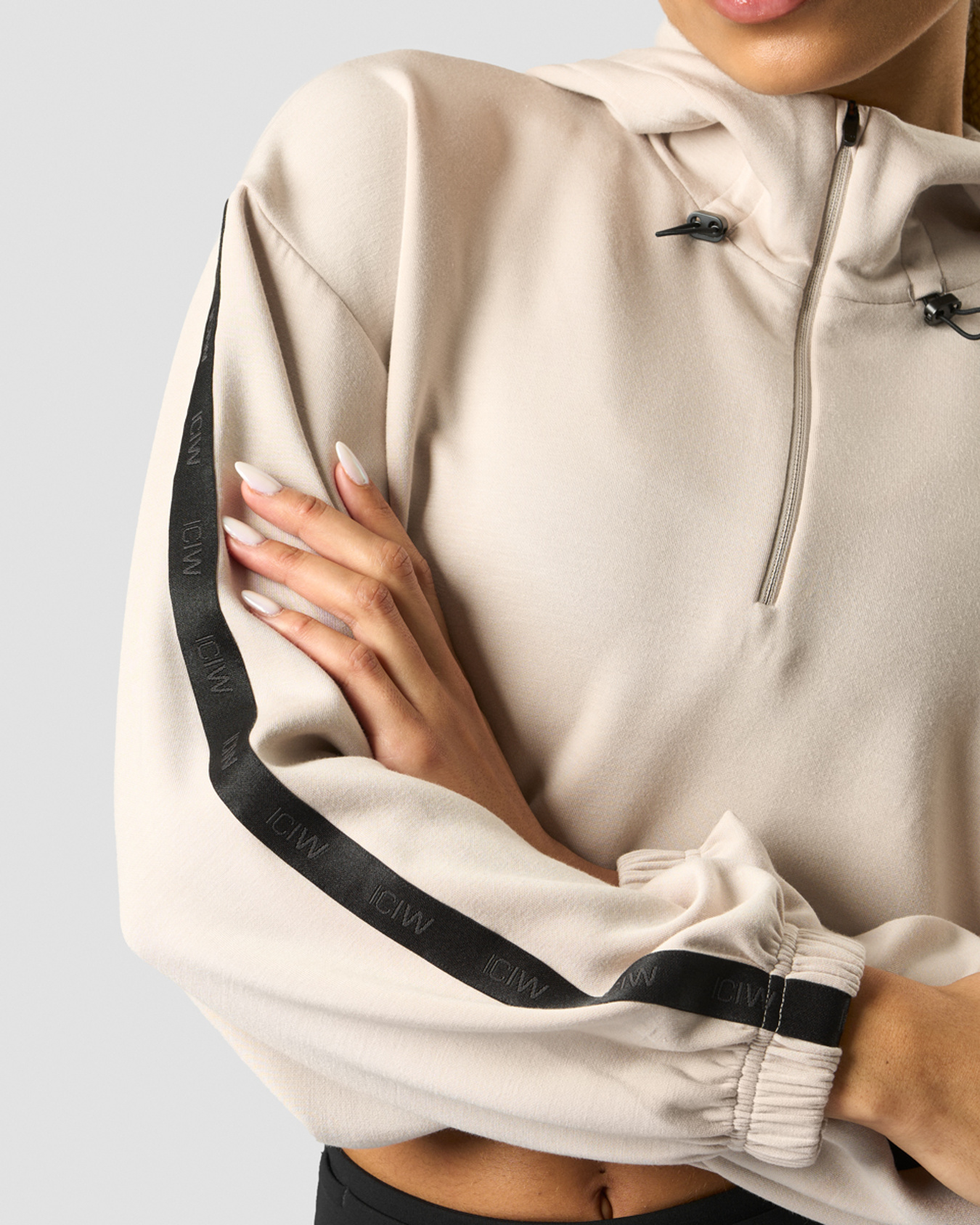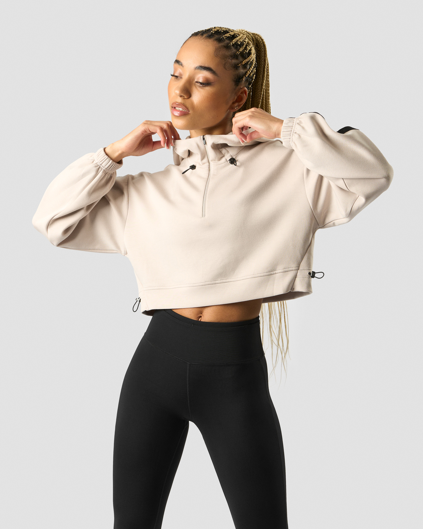 Kapuzenpullover mit 1/4-Reißverschluss. Der Stance Cropped Hoodie begleitet dich mit Style ins Fitnessstudio. Das Material ist weich und stretchig für ultimativen Komfort. Gefütterte Kapuze mit Kordelzug, 1/4-Reißverschluss und elastischen Bündchen. Eine verkürzte Länge und Kordelzug an der Taille für ein modernes Gefühl. 49% Polyester, 44% Rayon, 7% Elastan.
